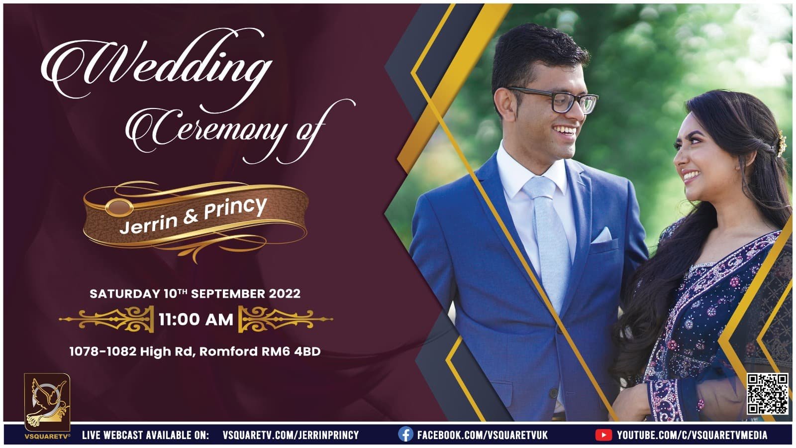 Jerrin and Princy’s Wedding Ceremony Will Be Live Streamed On www.vsquaretv.com On Saturday, September 10th, 2022 @11:00 AM